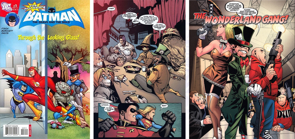 Ayrıca Batman: The Animated Series çizgi film dizisinde “The Lion and the Unicorn” adını taşıyan bölümün Alice karakterlerinin adını taşıdığını görürüz. Üstelik bir süre sonra da Barbara Gordon’u kaçıran Mad Hatter’in onu Alice kılığına soktuğunu, adamlarını da Alice eserindeki karakterler gibi giydirdiğine tanık oluruz.