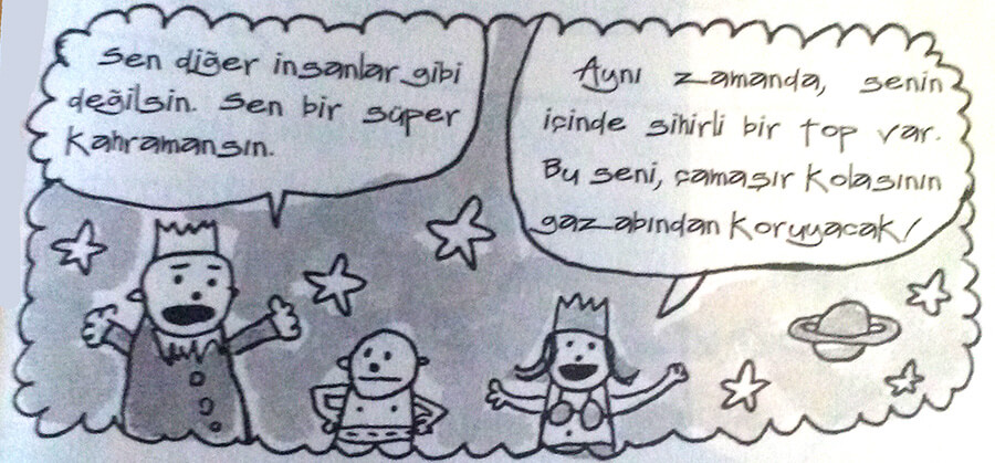 İlk evvela öykü kitabının içinde birkaç sayfalık çizgi romanlar yer alır. Bunlar iki yöntemle çıkar okurun karşısına. İlkinde kitabın başlangıcındadır. Altın çağdan bilindiği üzere bir önceki bölümün özeti verilir çoğunlukla, burada bu olay yolla anlatılır. İkinci yöntemdeyse çizgi roman asıl olayın başlaması için vesile olarak kullanılır. Konuşma balonları, anlatıcı yazı kutusu, efektler gibi çizgi romanı çizgi roman unsurlar hep yer alır bunlarda.