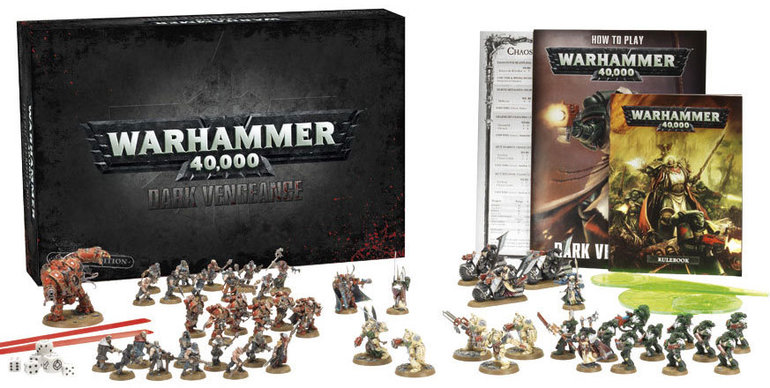 WH40K için başlangıç paketi; Dark Angels ve Chaos Space Marines ordularını (hatırlatma: ordu isimleri ve modelleri için buraya bakabilirsiniz) içeriyor. Her iki ordu için de, çok rahat 500 puanlık ordu listesi hazırlamak mümkün. Paketin içerisinde kural kitabı ve gerekli aksesuarlarında olduğunu unutmamak lazım. Paketin fiyatı da, Games Workshop’un kendi sayfasında 65£ Yani kişi başı 100 TL gibi bir rakama (tabi ki döviz kuruna bağlı bu rakam) temel ordunuzun modellerini alabiliyorsunuz. Hem bu paket ile birlikte; orduların temel birimlerinin kurallarını da edinmiş oluyorsunuz. (Ama en kısa zamanda ordunuza ait “Codex” yani ordu kitabını edinin.)